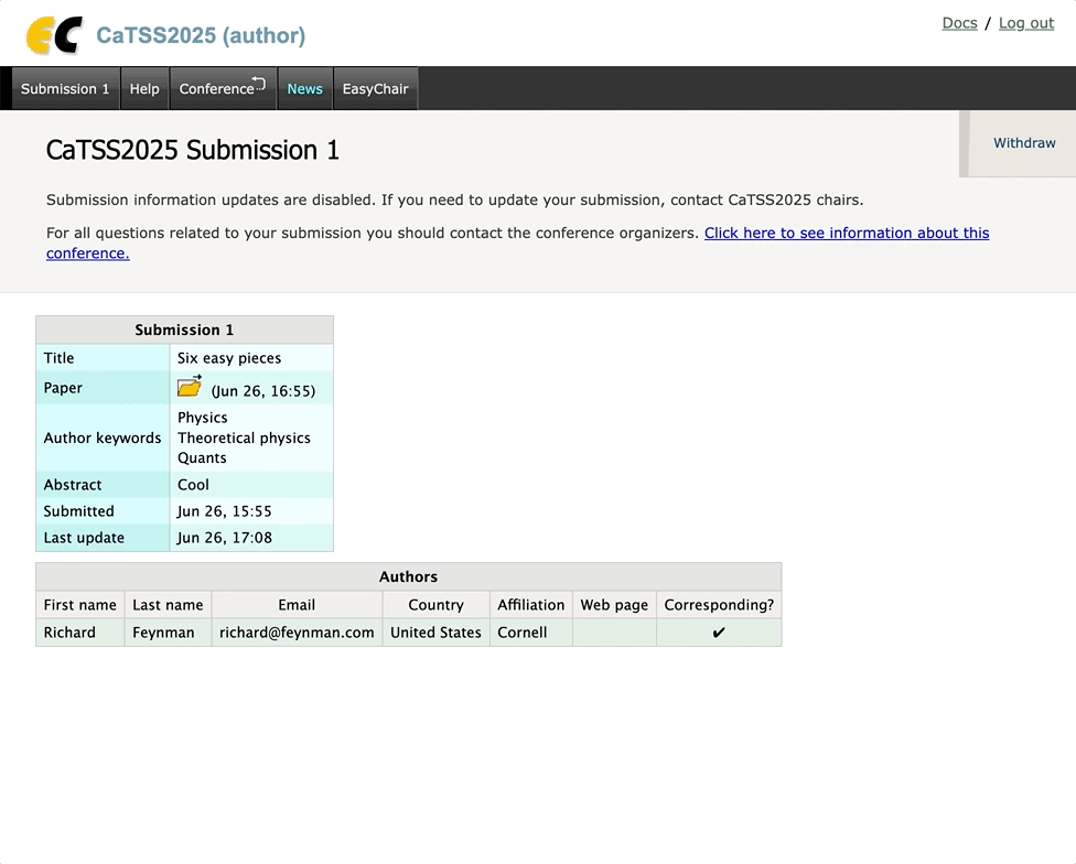 - Go to the EasyChair section in your main menu (this is always the last section).